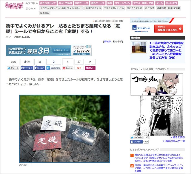 作成者: TOKYO FLIP-FLOP 2015年9月6日 ねとらぼに定礎シールが掲載 街中でよくみかけるアレ 貼るとたちまち趣深くなる「定礎」シールで今日からここを「定礎」する! 詳しくはねとらぼで→ 共有: クリックして X で共有 (新しいウィンドウで開きます) X Facebook で共有するにはクリックしてください (新しいウィンドウで開きます) Facebook 関連