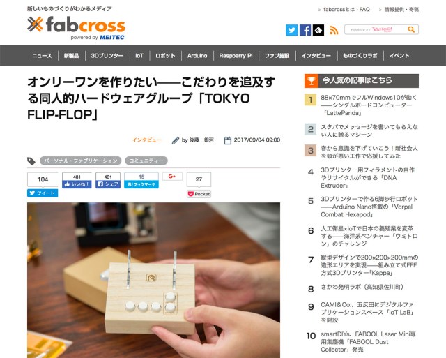 fabcrossにTOKYO FLIP-FLOPのインタビューが掲載されました。即売会向けミニレジ「レジプラ」や定礎グッズ、エアコン室外機フィギュアなど、オリジナリティ溢れる商品開発のこだわりをまとめて頂きました。新規事業開発担当の方必見の内容です。ぜひ御覧ください。